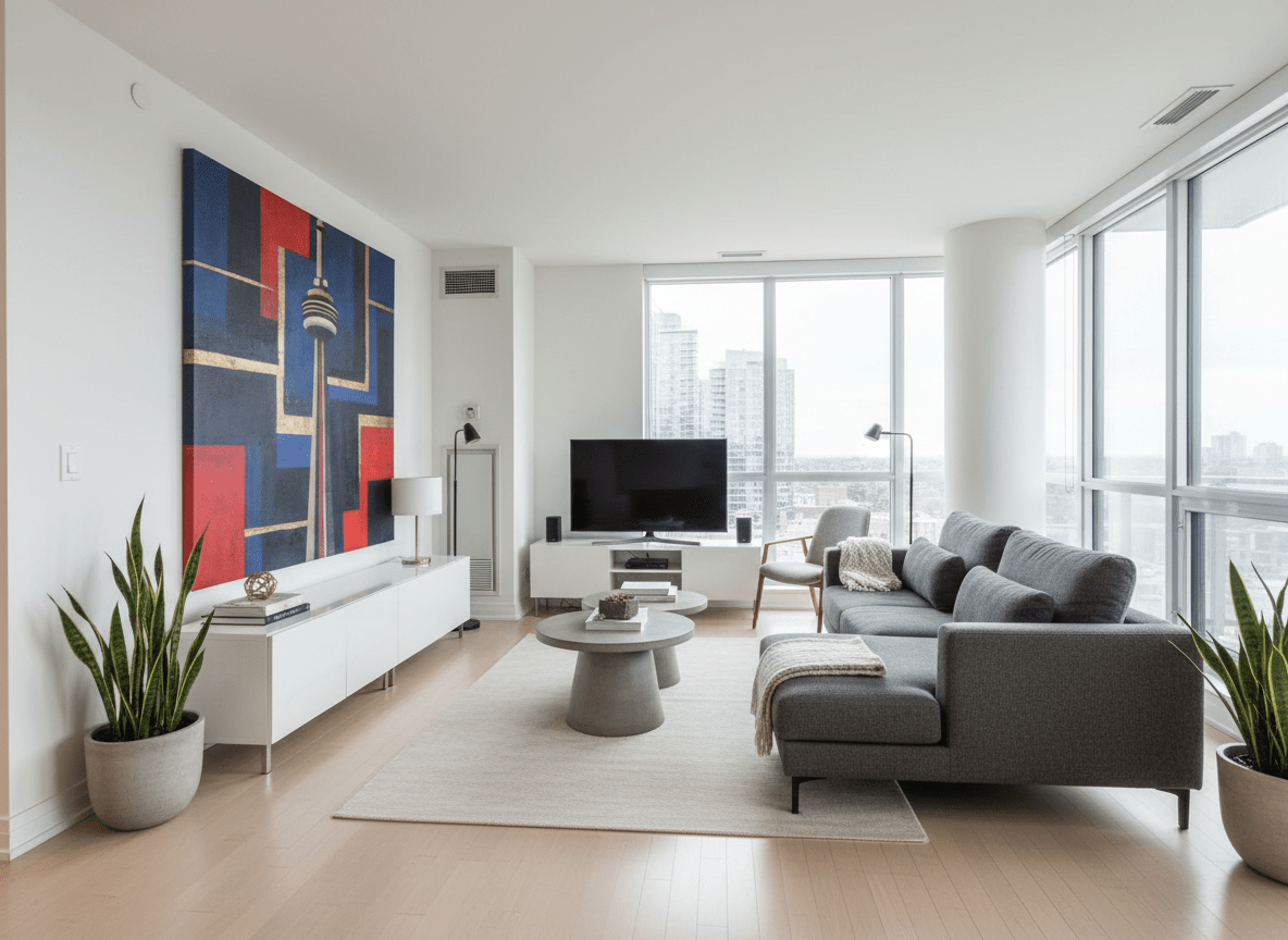 • Single Statement Piece: A large CN Tower print above the sofa or bed makes a bold impact in smaller spaces.