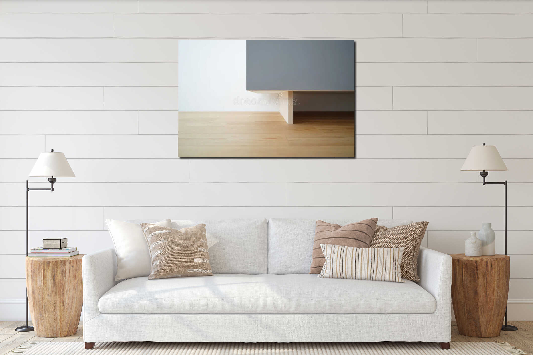 Minimalist cabinet over light wooden floor with clean lines and shadow Canvas Print