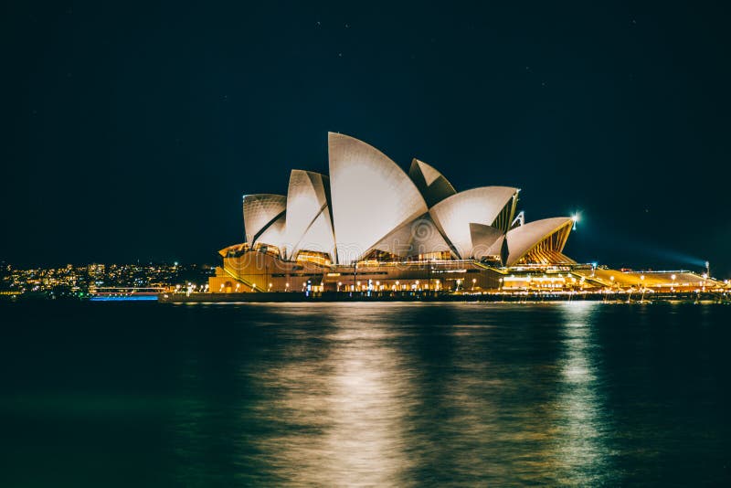 The beautiful Sydney Opera House lit by the blue hour light, Australia